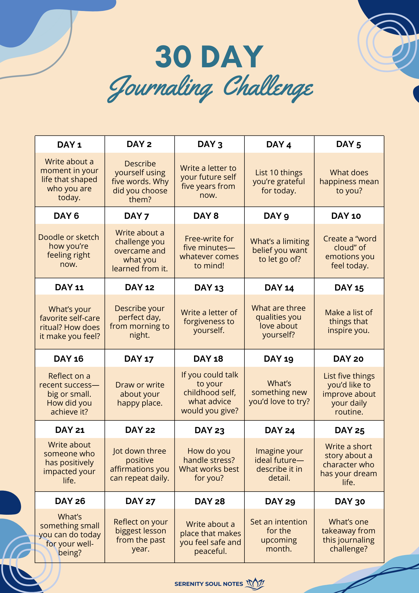 30 Days Journaling Challenge Planner